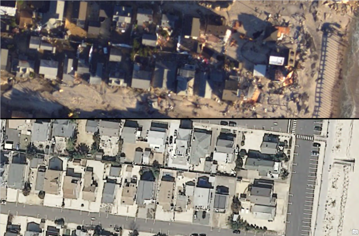 Post-Sandy satellite imagery (top) versus Pre Sandy (bottom)